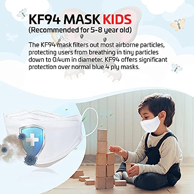 Korean High Quality Filter Non-Woven Material Made in Korea and Imported Adjustable closure ✅ BEST KIDS PROTECTION – This Extra Small KF94 disposable face mask is made with high quality MB fabric that is effective. Made with a triple-layered electrostatic filtration system, this product will filter at least 94% of PM2.5 to protect the wearer from exposure to harmful dust. This children's mask is very effective in protecting from dust, air pollution, and more. Protect your children’s health with these disposable face masks for kids. ✅ EASY BREATHING : GoodDay KF94 kids face masks fit securely on your face so that you can breath easily and keep the mask on all day without discomfort. ✅ COMFORTABLE FORM FITTING DESIGN : GoodDay kids disposable face masks have a 3D flat-fold(tri-fold) design that prevents air leakage. Use the nose bridge The adjustable nose bridge helps to ensure a secure fit and stays on your face without slipping or falling off. The perfect fit prevents fogging up your glasses. ✅ EVERYDAY USE & BACK TO SCHOOL: This Kids Mask is suitable for school, shopping, cycling, camping, running, travel, climbing and daily use. This mask will be your children's favorite mask providing them with a comfortable and cute design! ✅ KFDA APPROVED: GoodDay safety kids masks are manufactured in South Korea. The masks are KFDA approved.
