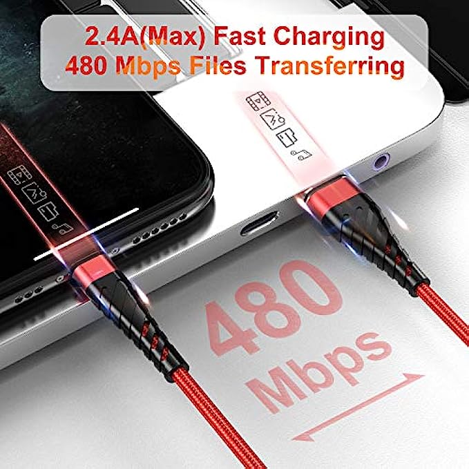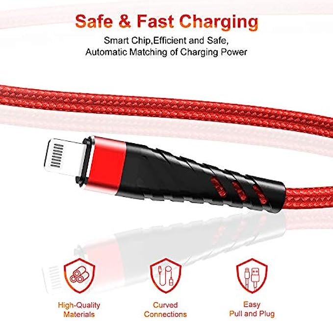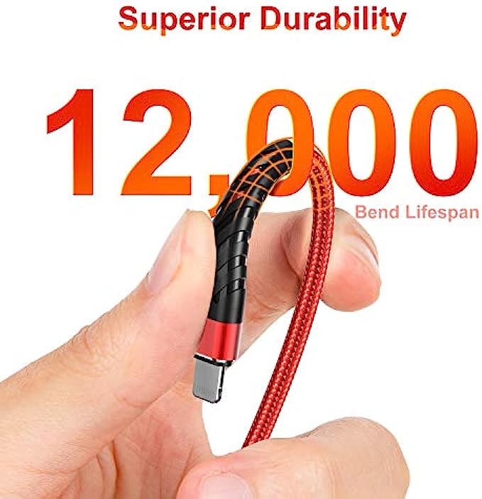 • 【Reinforced Joint Design】Nylon Braided long iphone charging cord 10 ft with reinforced joint design, cables have been tested to bend 95-degrees 10,000 times, can withstand repeated bending and pulling without breaking.