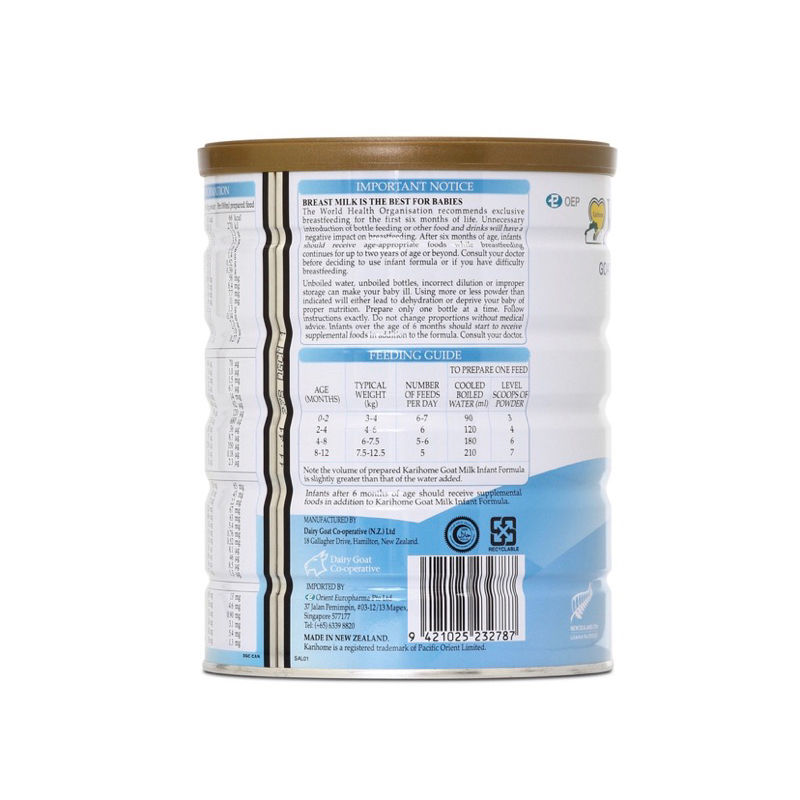 [2 tins] Karihome Goat Milk Infant Formula Stage 1 900G (For 0-12 months)