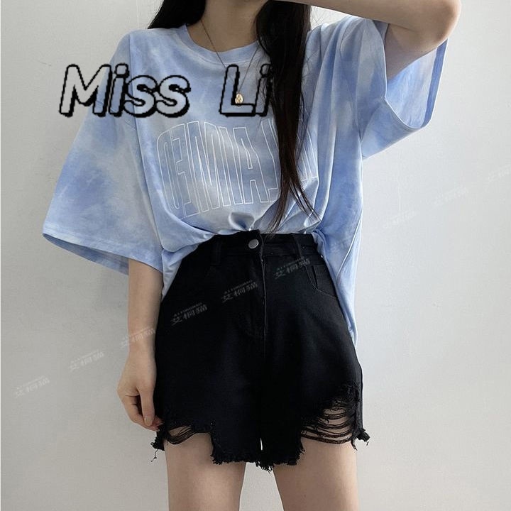 「Miss Li」台灣出貨短袖t恤女 大碼女裝 韓版 寬松 設計感小眾 中長款上衣 oversize 下半身失蹤 女生衣