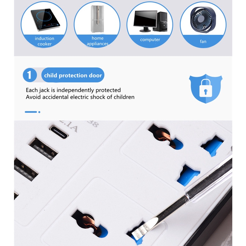 ?Bundle of 2?Power Socket Multifunctional With USB Pd Port, Fast Charging Extension Cable, Power Adapter A37