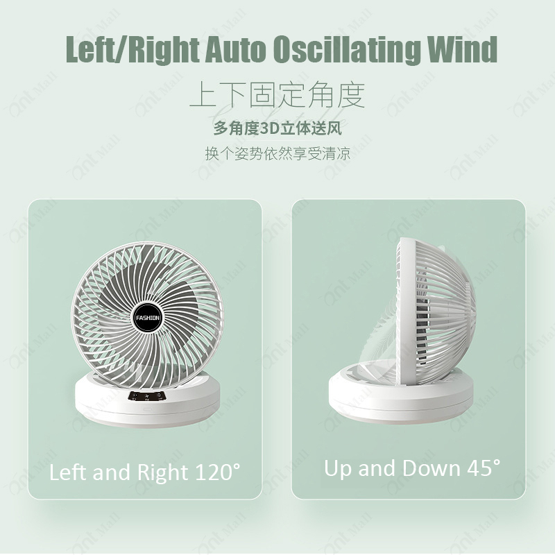 ?SG? Desk Auto Oscillating Fan Table Foldable Mini Wall-Mount Fan 4800mAh USB Rechargeable Timing Fan Auto Rotation