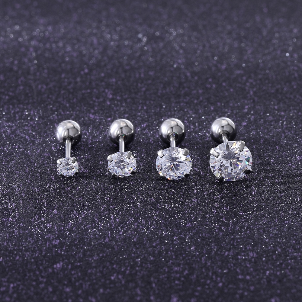 1 Pc 3/4/5/6MM Stainless Steel Round Stud Earrings Gold Crystal Cartilage Stud Earring Tragus Conch Helix Piercings