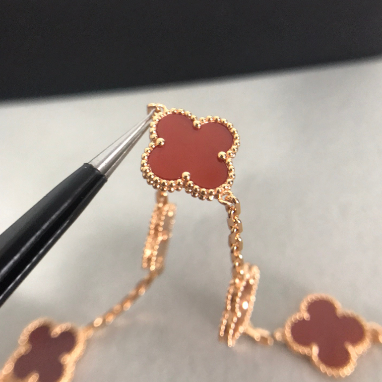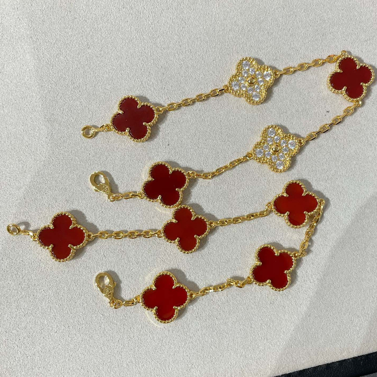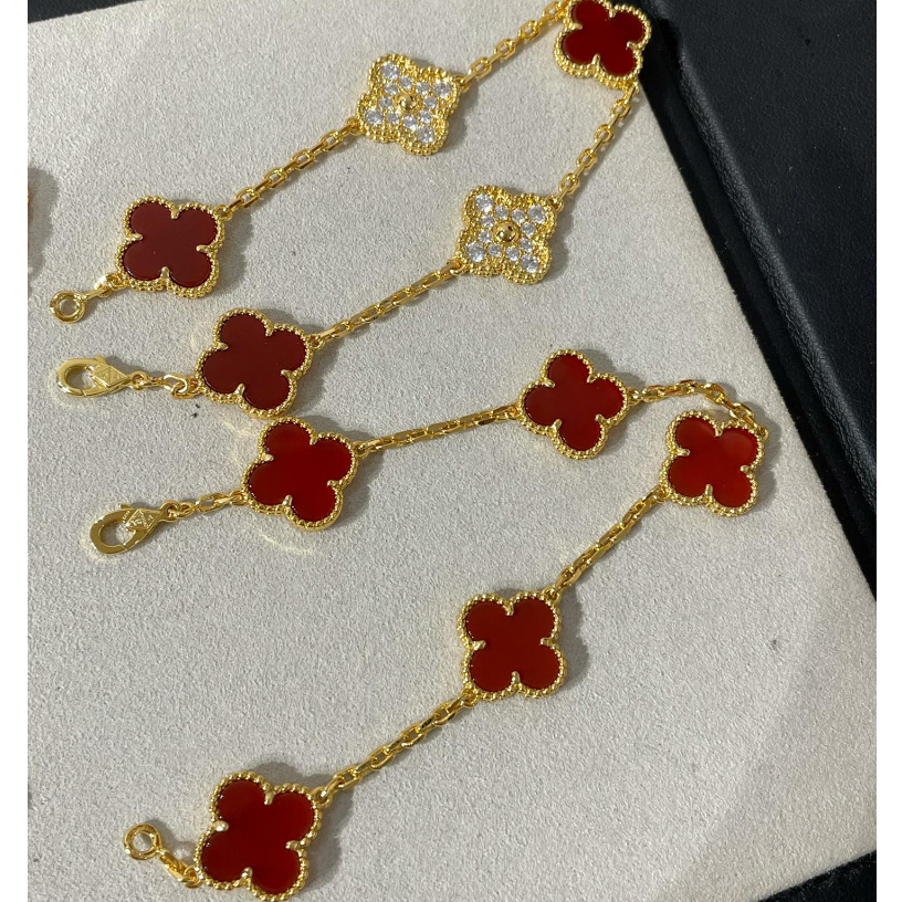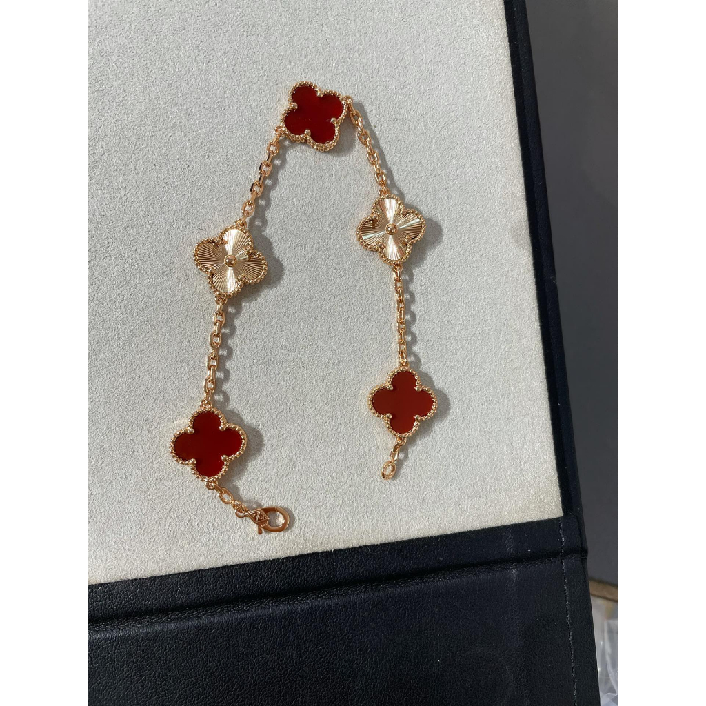 100% Original Authentic V&CA Van Cleef Bracelet 18K Rose Gold VAN Four Leaf Clover Red Bracelet For Women