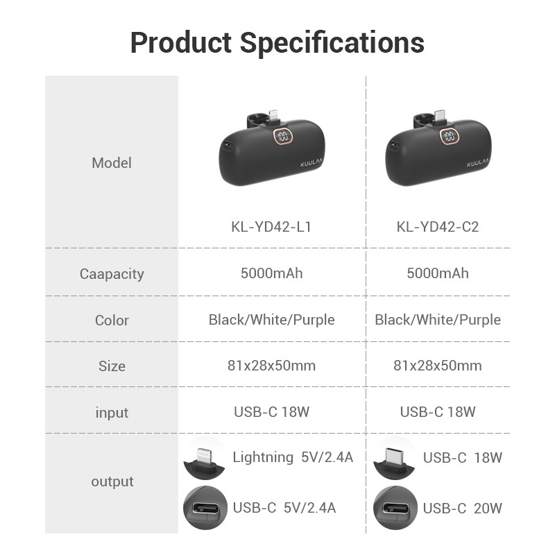 100% Quality❡KUULAA Mini PD 18W Power Bank 5000mah Portable Charger External Battery Fast Charge Power Bank for Samsung