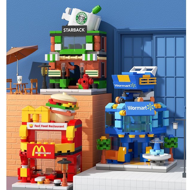 164 Pieces Mini Lego City Street View Blocks McDonald's House Model Children's Educational Toys