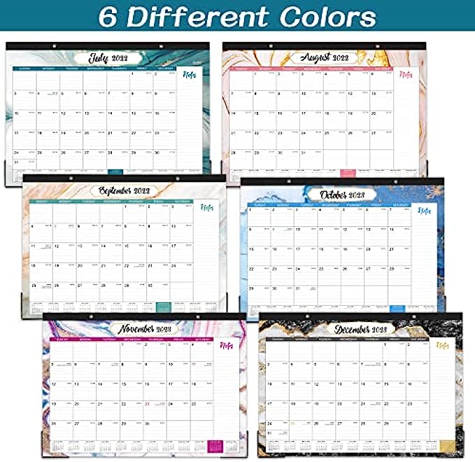 MONTHLY OVERVIEW - 18 months desk calendar covers from July 2022-December 2023. Monthly overview in every page (17" x 12"), can plan a better future life. Julian dates and highlighting help remind you of every important day.