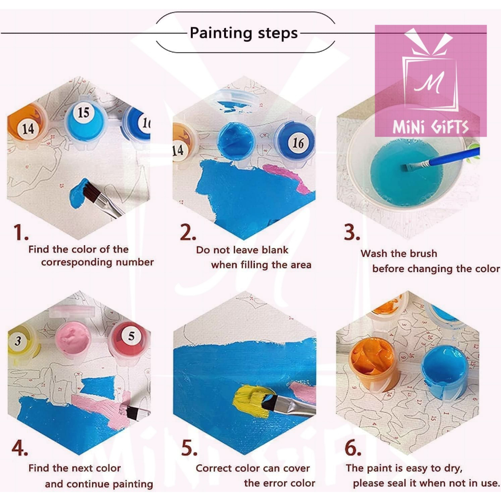 Quality:Came with brushes, paint and screws for hanging up. Good canvas quality. Value For Money:Worth the price paid. although was shocked at min. of 16pcs, I feel it's worth it. bought for my girls to pass their time and lessen screen time.