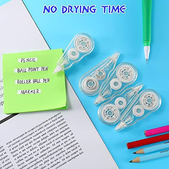 Anti Fracture Correction Tape: Made of reliable material, with firm stickiness, not easy to break the tape, compact shape, not easy to take up space, pencil bags and pockets can be placed anywhere
