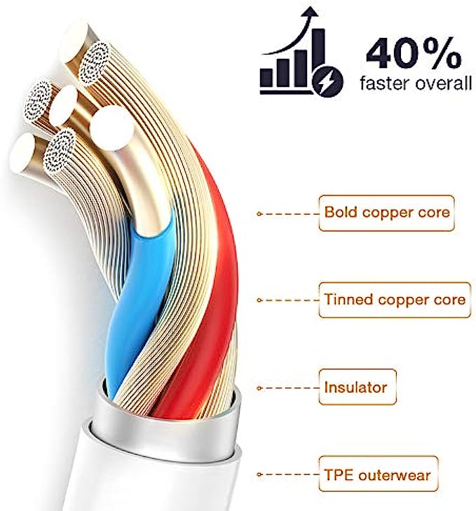 Safe Fast Charging:VODRAIS iPhone charger cable are made of high purity copper core and smart intelligent chip with overcharge protection, stable current protection, automatic switching and battery protection . 2 N 1 Function: Great performance ensures your devices syncs and charge simultaneously with up to 480 mb/s . It syncs photos, music, videos, files with the ability to charge the device. also delivers up to 2.4A current to maximize the charging efficiency performance DURABLE MATERIAL:Highest standard of quality cables at an affordable price, is super smooth and comfortable,more durable than standard Phone charger cord. Quality Copper Wire: Connects to your iPhone, iPad with Connector charges/syncs by connecting the USB connector into wall charger or computer. Enjoy charge times up faster than than most standard cables Universal Compatibility: Work with iPhone 13 12 11, 13 12 11 Pro, 13 12 11 Pro Max,13 12 Mini, XS Max, XS, XR, X, 8 Plus, 8, 7 Plus, 7, 6S Plus, 6S, 6 Plus, 6, 5S, 5C, 5, iPad Pro, iPad Air, Air 2, iPad mini, mini 2, mini 4, iPad 4th gen ,iPod Touch 5th gen, iPod nano 7th gen and Beats Pill+ Ultra High Quality Assurance: According to the experimental results, the fishbone design can accept at least 20,000 bending and insertion tests for extra protection and durability. Upgraded 3D aluminum connector and exclusive laser welding technology, which to ensure the metal part won't break and also have a tighter connection which fits well even with a protective case on and will never loose connection.