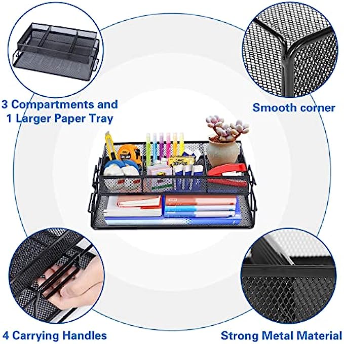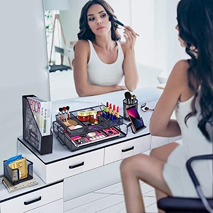 【Use Everywhere】- Enhances your workstation and great for dressing table, kitchen counter, studying room and washbasin. Fit lots of things like desk organization, cosmetic, school supplies, soap, fragrance, spoon and fork etc. The desk supplies is also a good choice for New Year's gift, Birthdays, Children's Day or other celebrations for family, friends and relatives