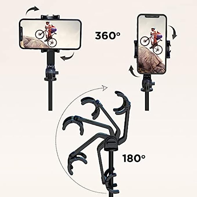 【Selfie Stick With Widely Compatible】Can freely rotate 360°, and the mount arm can be 190°flipped to shoot pictures at various angles, ensuring you take the best and beautiful photos. The selfie stick tripod suitable for all the smartphones.