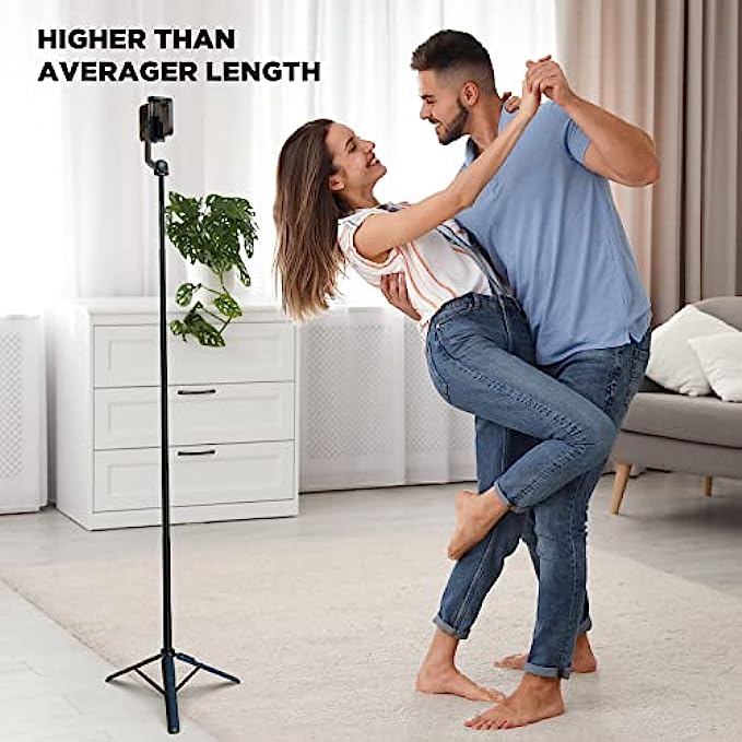 62" Selfie Stick, Extendable Selfie Stick Tripod with Wireless Remote, Portable & Lightweight Phone Holder for Video Recording, Selfies, Vlog, YouTube and TikTok, Phone Tripod Fit for All Cel