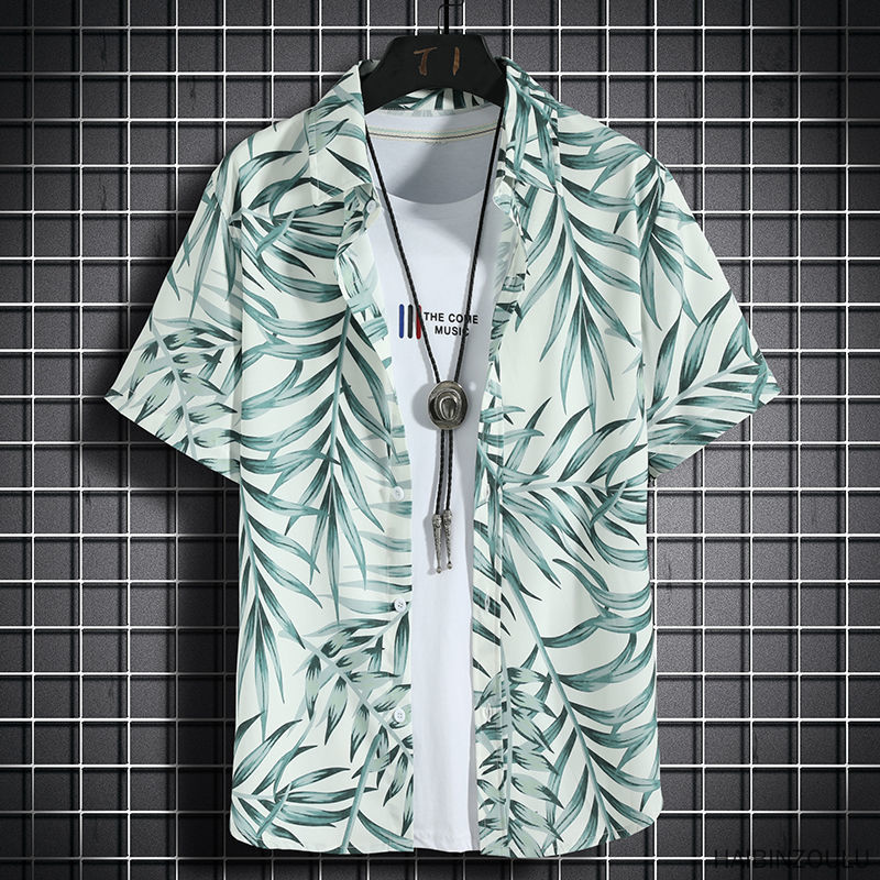7-color boys' short sleeve shirt Hawaiian style beach shirt men's loose quick dry Casual Short Sleeve printed shirt beach quick dry T-shirt fashion trend loose oversized men's and women