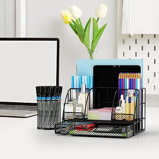 • 【Unique And Stylish】: Desk organization use black metal finish design, simple and stylish, easily match other office accessories and surrounding decorations.It is suitable for home, office, classroom, etc; Nice on desktop, living room, bedroom dresser, coffee table, shelf, etc.
