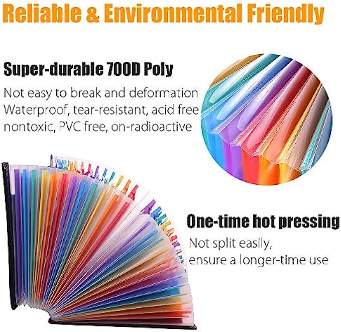 Colorful Expanding File Folder: the multi-color plastic label reveals both the document and the label tab, making all your files simple to retrieve. Include Pre-printed labels with alphabetical ABC and the months, and also can be custom labeled