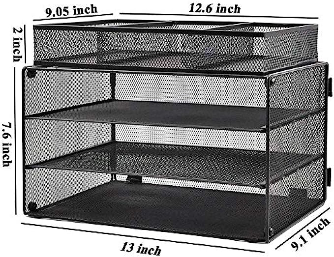 • STURDIER & DURABLE: This 3 Slot paper organizer tray is made of lightweight metal mesh steel construction and environmental powder coat.