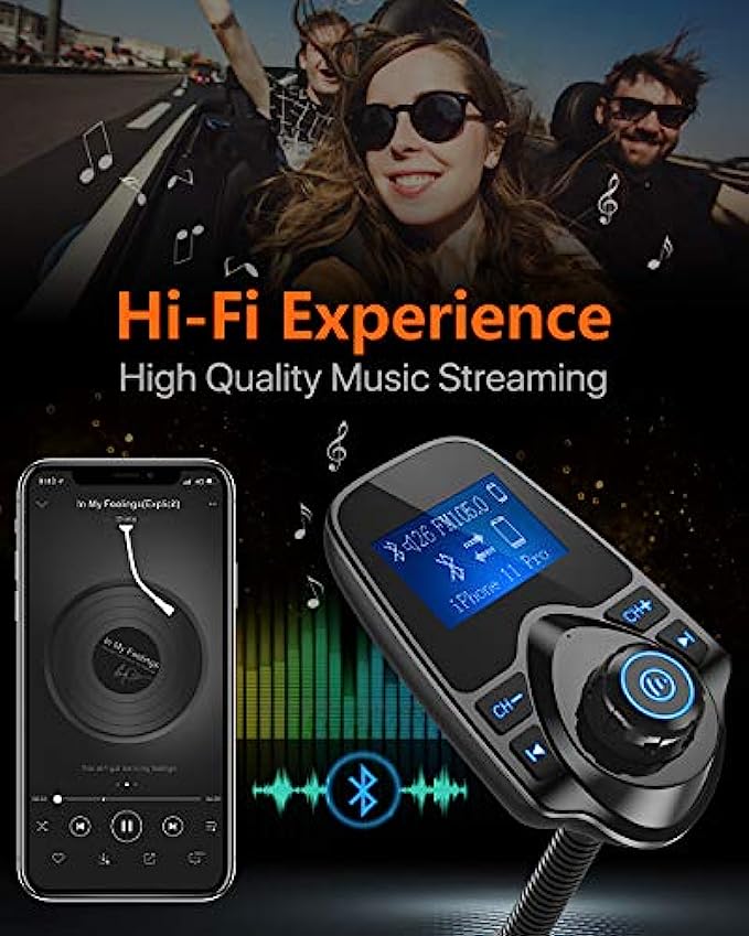 • Flexible Gooseneck&Bluetooth V5.0: The rotatable Gooseneck of the wireless radio adapter can provide you with an adjustable viewing angle and optimal viewing comfort of LCD display screen. With the Bluetooth V5.0 technology, the car bluetooth adapter can provide a more stable and faster connecting without intermittent disconnection.