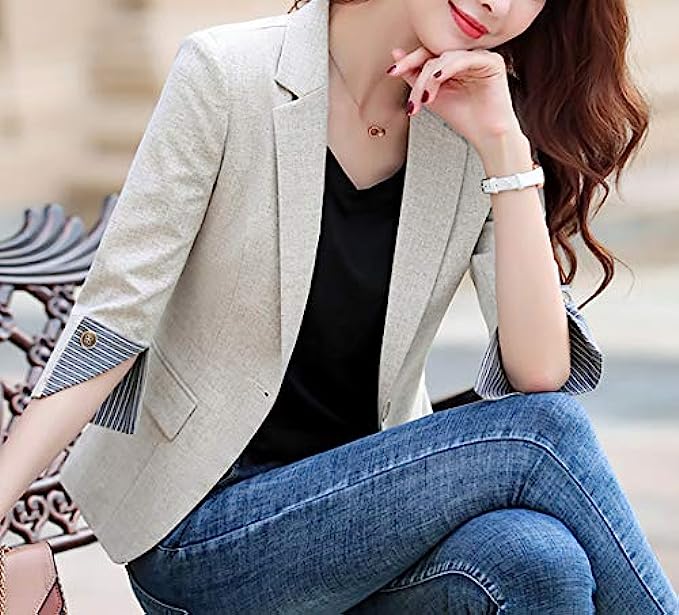 polyester, spandex Imported Polyester lining Button closure Hand Wash Only Material: Imported, high quality fabric, 80% Polyester. Extremely soft and skin-friendly. Features: The good quality plaid fabric makes you comfortable when wearing. You can feel cool and soft to touch it, 3D stereo clipping, excellent sewing thread, classical casual design, comfortable thick shoulder pads, slim and fit, which looks really simple and elegant. Nice womens blazer!