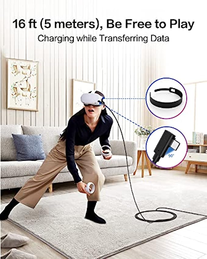 • Flexible 16FT(5 Meters) Oculus Quest 2/1 Link Cable: The two ends of Oculus Quest 2/1 link cable are connected to the VR headset and the PC, which can be freely and flexibly moved without restrictions when playing games, watching movies, listening to music, etc