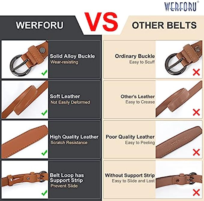 WERFORU 2 Pack Women Leather Belt Waist Skinny Dress Belts Solid Pin Buckle Belt for Jeans Pants