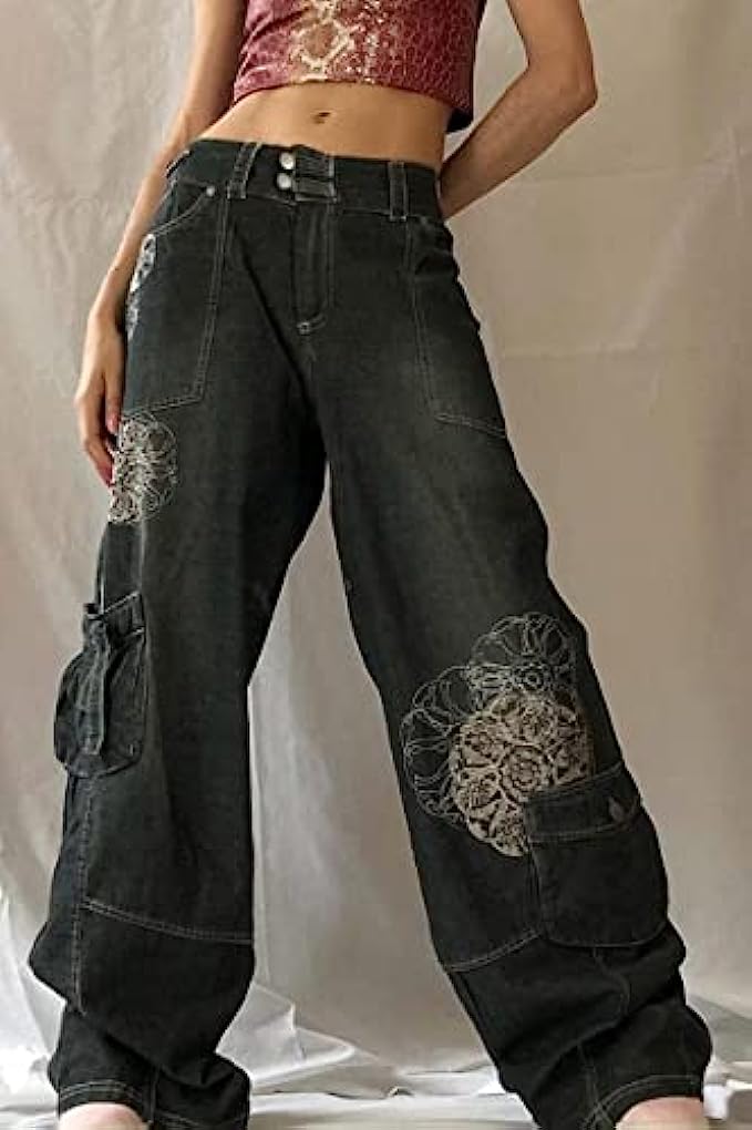Denim Machine Wash Premium material: Flora print casual loose baggy Trousers are made of high-quality and soft denim fabric, the trousers have good moisture absorption and heat resistance, light in weight and comfortable to wear. Personality design: This high waist corduroy pants own with vintage printing design with stitching pockets, casual mid-waist and wide leg style, simple but wild, the jeans adding more fashion to your overall dress. Wild style: The casual denim pants are matched with simple T-shirts, shirts, vest, camisole, sweaters or various jackets, you can create a comfortable and fresh effect. Suitable occasions: The Capri 2001's Retro Punk Style Boyfriend Baggy Jeans are perfect for any occasions, such as: daily wear, work, school, birthday, party, dating, shopping, street, vacation, etc. Package & Size: Women’s vintage printing wide leg jeans are of three Size: S/M/L, please refer to the size details in the description, image, or size chart before ordering.