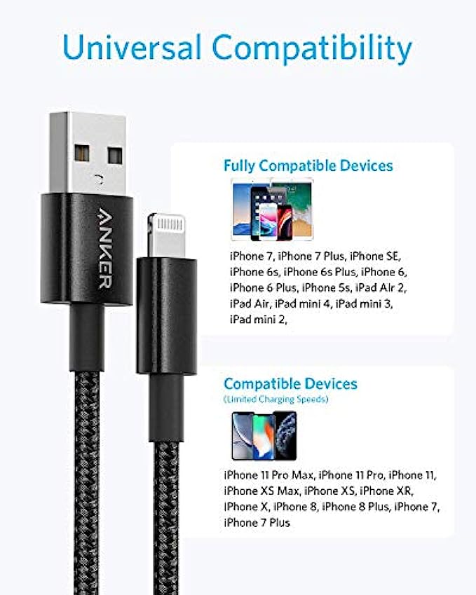 • What You Get: Premium Nylon Lightning iPhone Charger Cable (6 ft/1.8 m), welcome guide, a lifetime warranty, and our friendly customer service.
