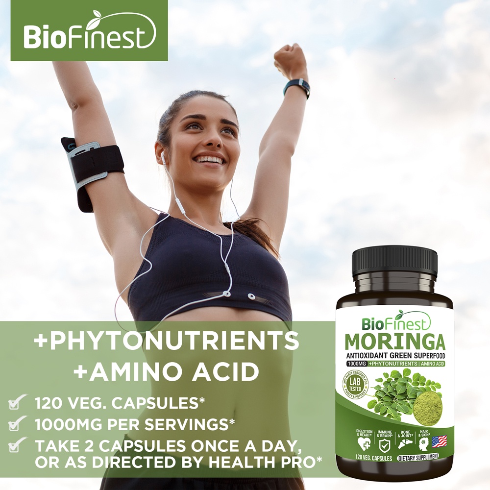 Performance:good performances . Suitability:suitable for adults , male and female, young and old . BioFinest Moringa leaf 1000mg + phytonutrients / amino acid . 120 vegan capsules dietary supplement. Easy to use flip-open-close bottle cap for daily use, convenience to carry around for home, office, workout and traveling. Smooth and easy to swallow form, no oversized capsules, no nauseating bitter attertaste. Tasteless, no bitter aftertaste, smooth to swallow. After taking moringa leaf capsules supplement my muscles clamped was gone. I will definitely recommend to my friends and colleagues. Very fast delivery. Thanks seller and team for their hard efforts to deliver this product in time. This is my second time ordering.