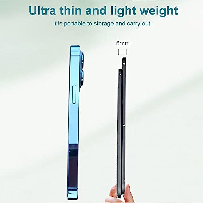 • ?【Portable】This foldable aluminum alloy phone holder takes up very little space and the thickness is only 0 0.6cm ultra-thin, easy to fold to use, can be folded into pocket size. It can be carried anywhere or in a backpack or computer briefcase. It is convenient to use anytime, anywhere. Suitable for travel, home, business, office. The perfect companion.
