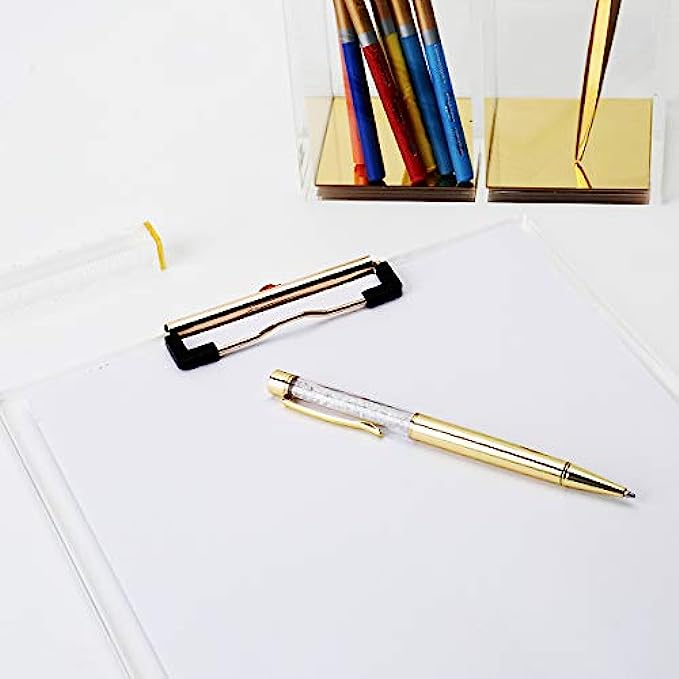 Clear acrylic with gold design style will make a unique and stylish addition to your workplace. Enjoy the simplicity of these clipboards alone, or coordinate with our other acrylic desk accessories