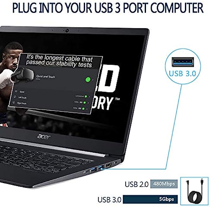 • USB 3.2 GEN 1 : Data transfer rate up to 5Gbps, which allows it connects Quest2 Link Program with no lag. Please make sure to plug it into USB 3.0 slot on the motherboard or GPU to ensure optimal performance.