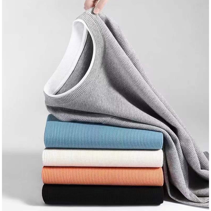 Cotton Long Sleeve Waffle Sweatshirt Men Round Neck Oversize Sweater Basic Model Fake Two-Piece Knit Long Sleeve Tshirt