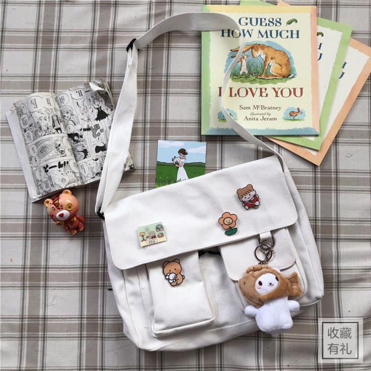 【Crazy Bag】Japanese Harajuku Cute Retro Girl Messenger Bag Canvas Student Bag School Bag Student Shoulder Bag Female Bag