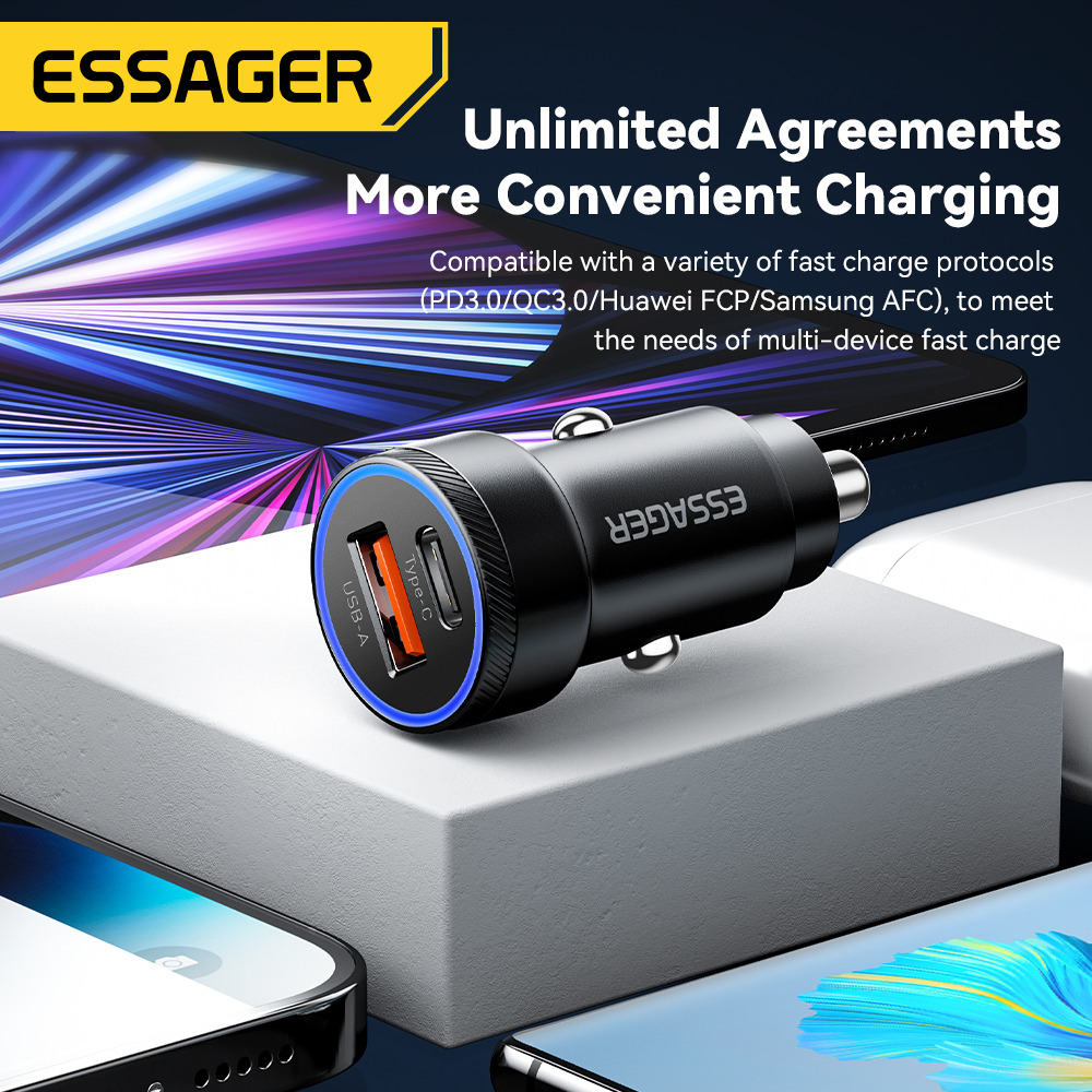 Essager 54W LED Usb Type C Car Charger PD QC 3.0 Fsat Charging For samsung IP Phone 12-24V car charger