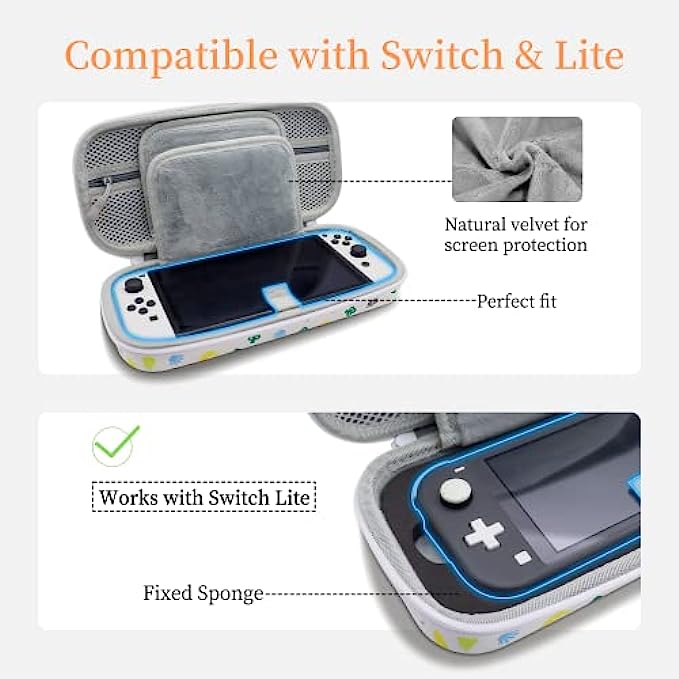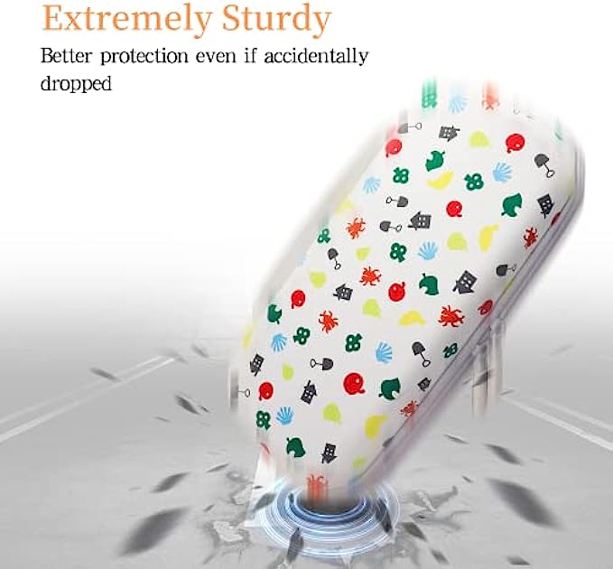 Island element design, a warm memory for AC fans. Also an ideal gift for family or friends, make them smile and make yourself happy. Specific design and perfect fit with all Switch familty(Switch / Switch Oled / Switch Lite). Two flaps on the middle can hold up to 20 game cards, it can also be super soft screen protectors. The bottom is designed with a double-layer hard shell, which perfectly protects the Switch from external shocks. All products are triple tested, plus we offer a five-year warranty.