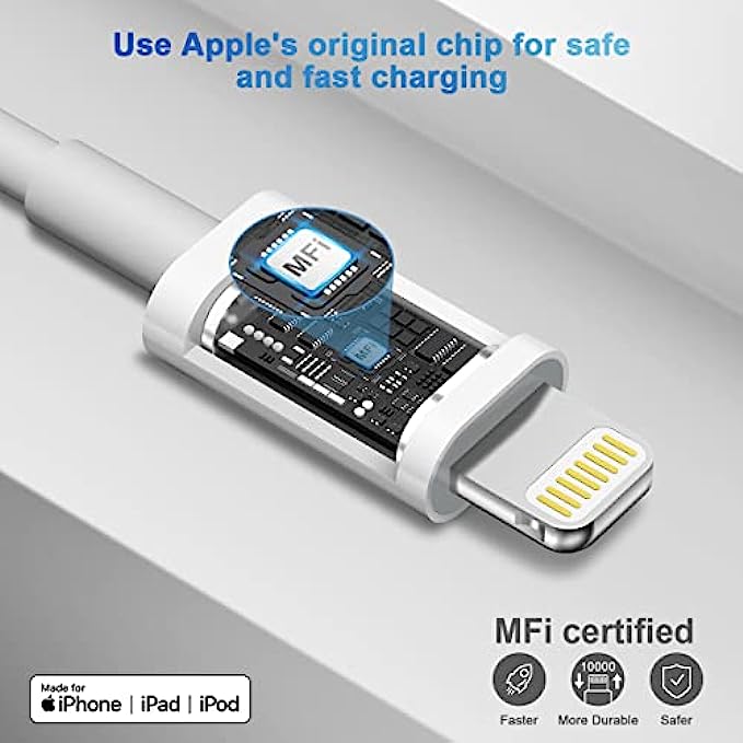 • 【 Safety Efficient Fast Charging 】- The Power Delivery Wall Charger for iPhone owns bulit-in multi-protection system, avoiding from over-voltage, over-charge, over-heat, etc. The smart chip including in the MFi certified lightning cable match the current required by the Apple device automatically, charge your iPhone/iPad device fast, safely and steadily.Tangle-free 6 Feet length is convenient for usage while charging and sync at home/office/travel in bed, hotel rooms, and more.