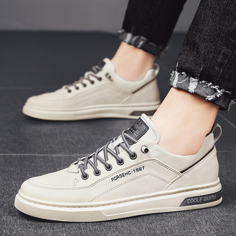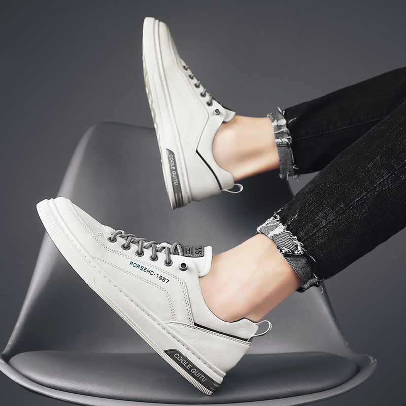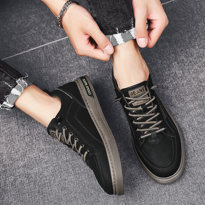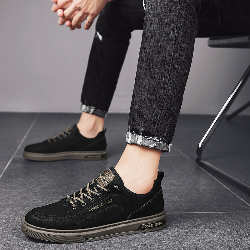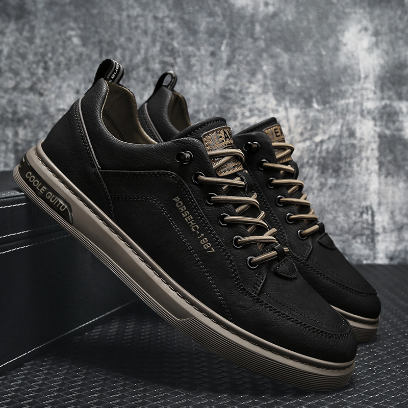 JINTOHO Fashion Men Leather Sneakers Outdoor Leather Shoes Comfortable Casual Rubber Lace Up Shoes For Men