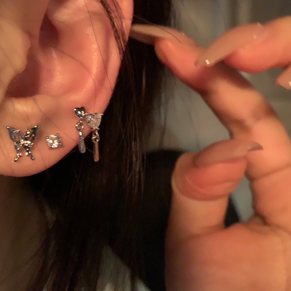 Korean Style Heart Silver Earrings Set Butterfly Pearl Zircon Stud Earrings for Women Fashion Jewelry Accessories