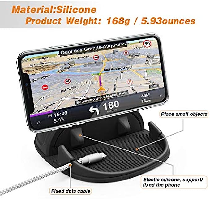 • Stable & Slip free : Dependents on its soft silicone-textured bottom and sticky pads, it can protect phone against bumping, scratching or flying out whenever there is an emergency braking, sudden stop and sharp turn
