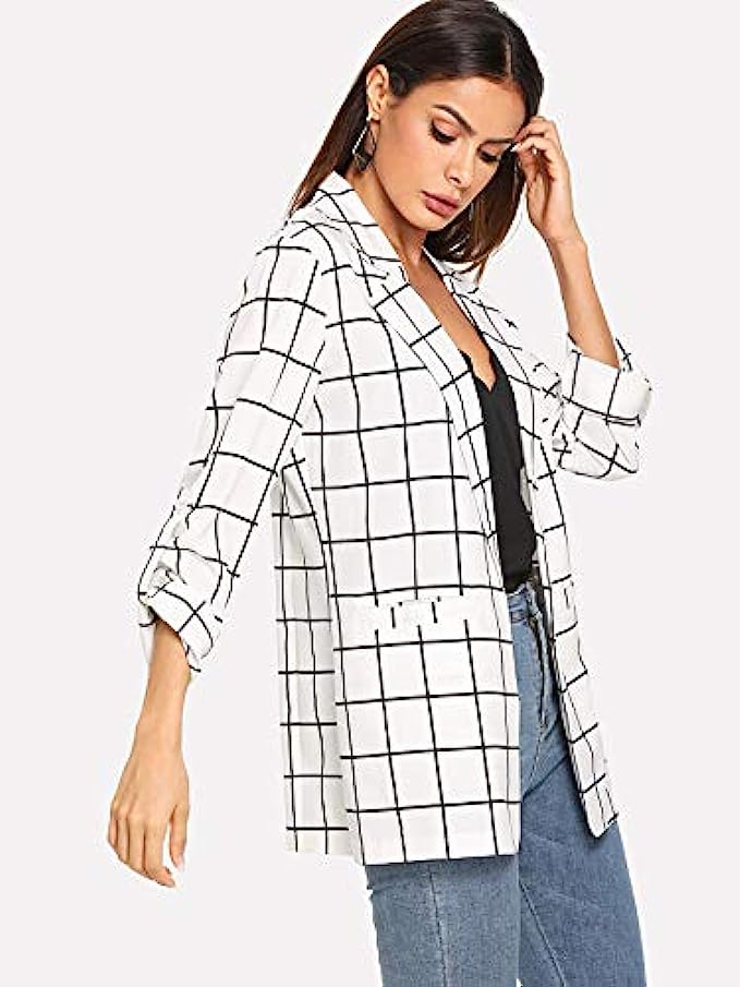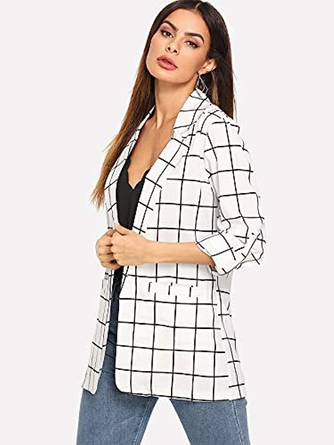 100% Polyester Polyester lining Hand Wash Only Material: Polyester. Fabric has some stretch Features: Long Sleeve, Plaid, Open Front, lightweight Jacket, Roll Up Sleeve, Dual Pocket, Workwear, Collar, Longline, Regular Fit Suitable for Fall, Spring, Casual Outtings, Office, Vacation, Picnic, Traveling, Driving, Home and Daily wear, Care: Hand Wash, Machine Washable, Do not Bleach Please refer to sizes in Product Description as below.