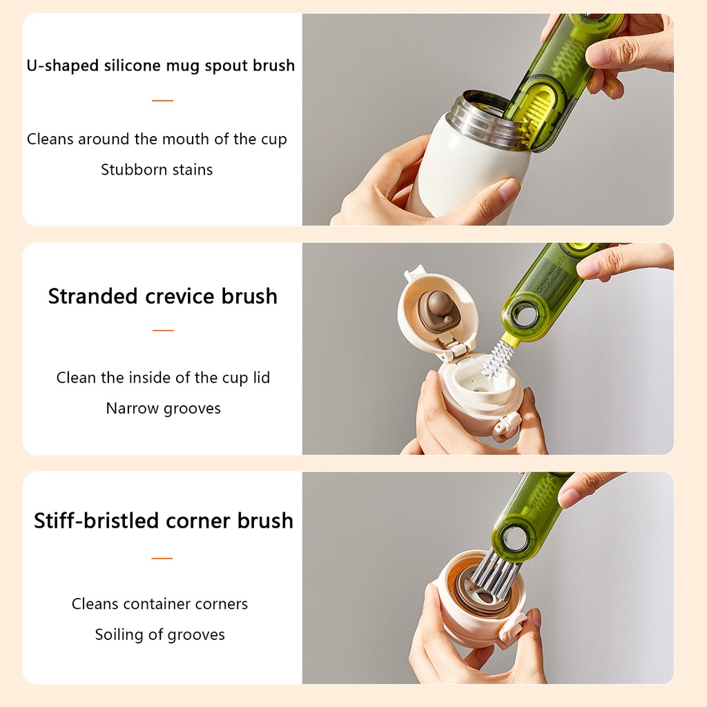 Multifunctional 3 in 1 U-shaped Silicone Cup Bottle Brush Lid Cleaning Tool Groove Gap Rotary Brush Cleaning Brush