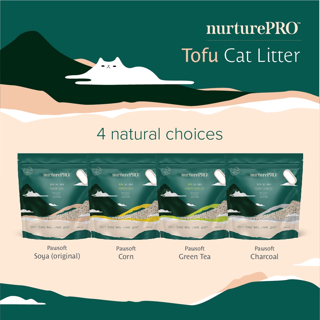 NurturePRO Pawsoft Tofu Cat Litter (7L x 6) | Carton Deal, Tofu Litter Soya Corn Green Tea Charcoal