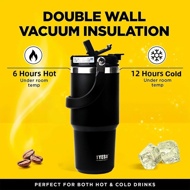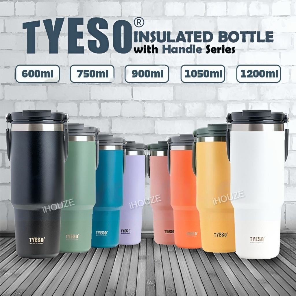 Original Tyeso Tumbler With Handle 600/750/900/1200ml Stainless Steel Double Layer Insulated Thermos Flask Water Bottle