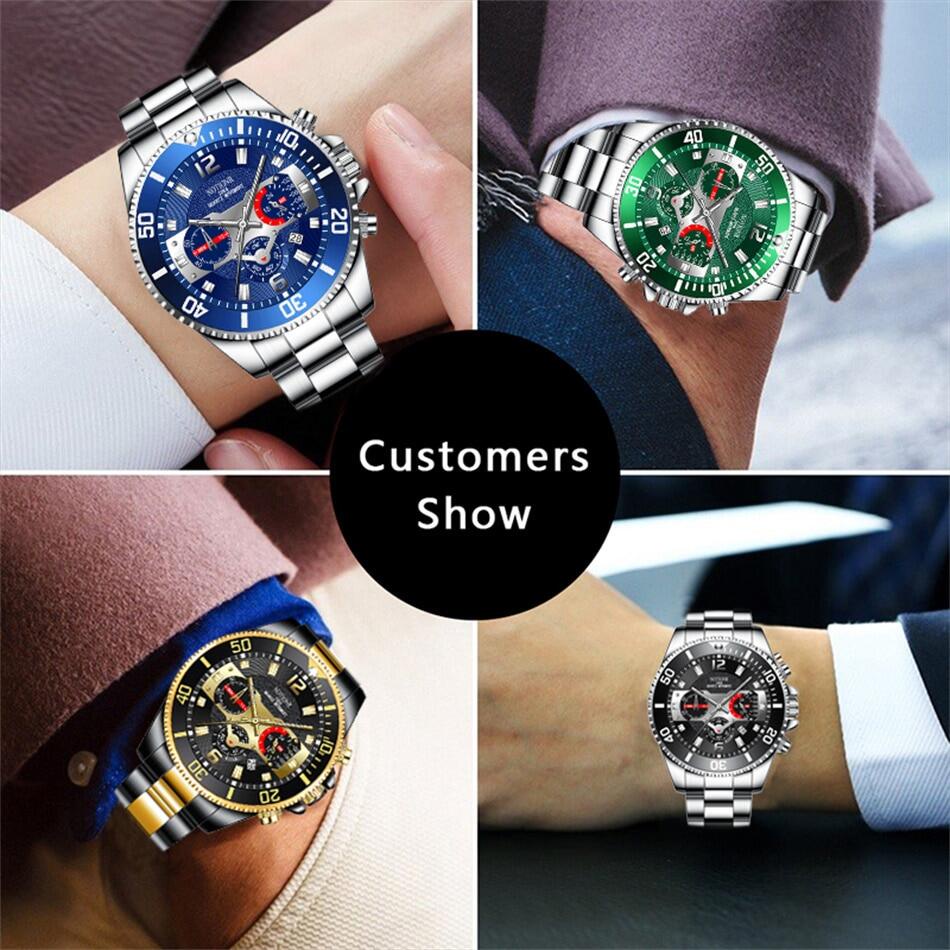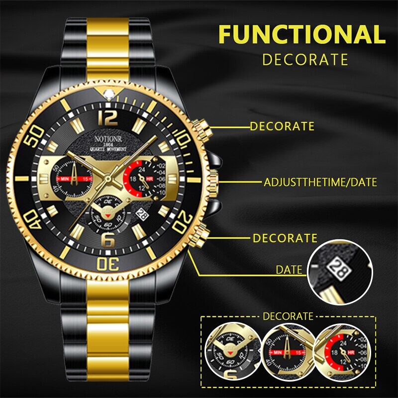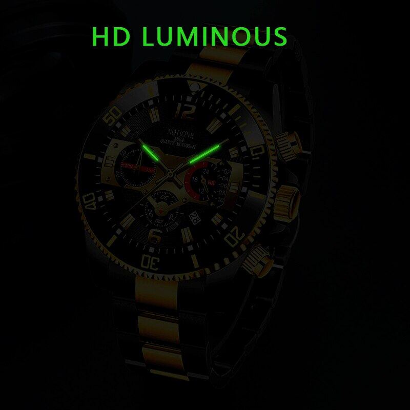 [With Box]POSHI Fashion Business Stainless Steel Luxury Mens Gold Watch Luminous Waterproof Automatic Date Swiss Quartz Wrist Watch for Men