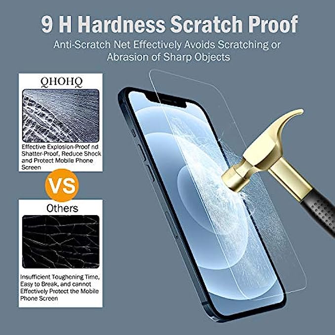 QHOHQ 3 Pack Screen Protector for iPhone 12 Pro Max 6.7" with 2 Pack Tempered Glass Camera Lens Protector, Ultra HD, 9H Hardness, Scratch Resistant, Easy Install - Case Friendly