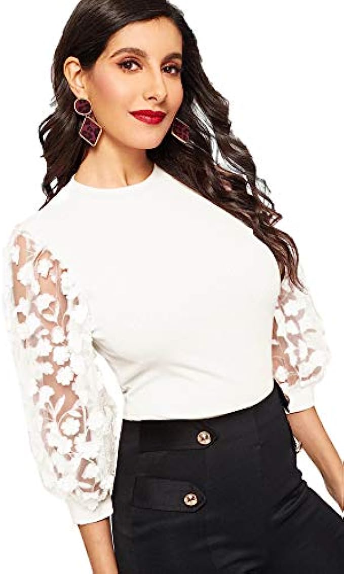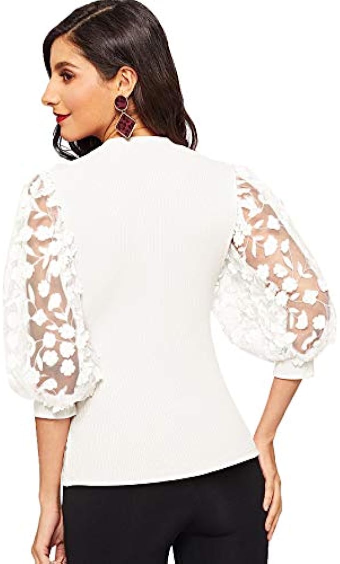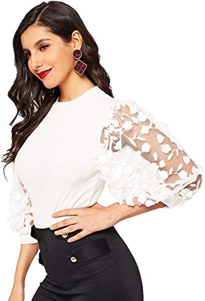 • Vintage style women blouse, elegant women short sleeve tops, perfect with shorts, jeans, pants, skirts or leggings, mesh sleeve slim fitted blouse to show your elegant and sexy style