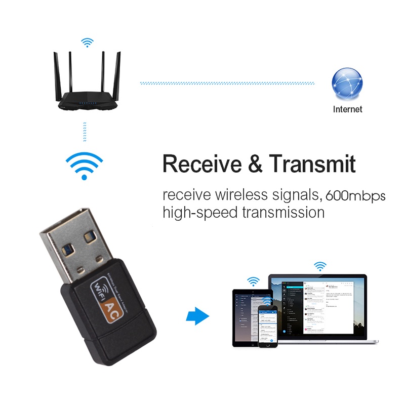 Roni USB Wireless Wifi Adapter 600Mbps Wifi Dongle Dual Band 2.4G / 5G Hz 802.11 AC SG SELLER(In stock)