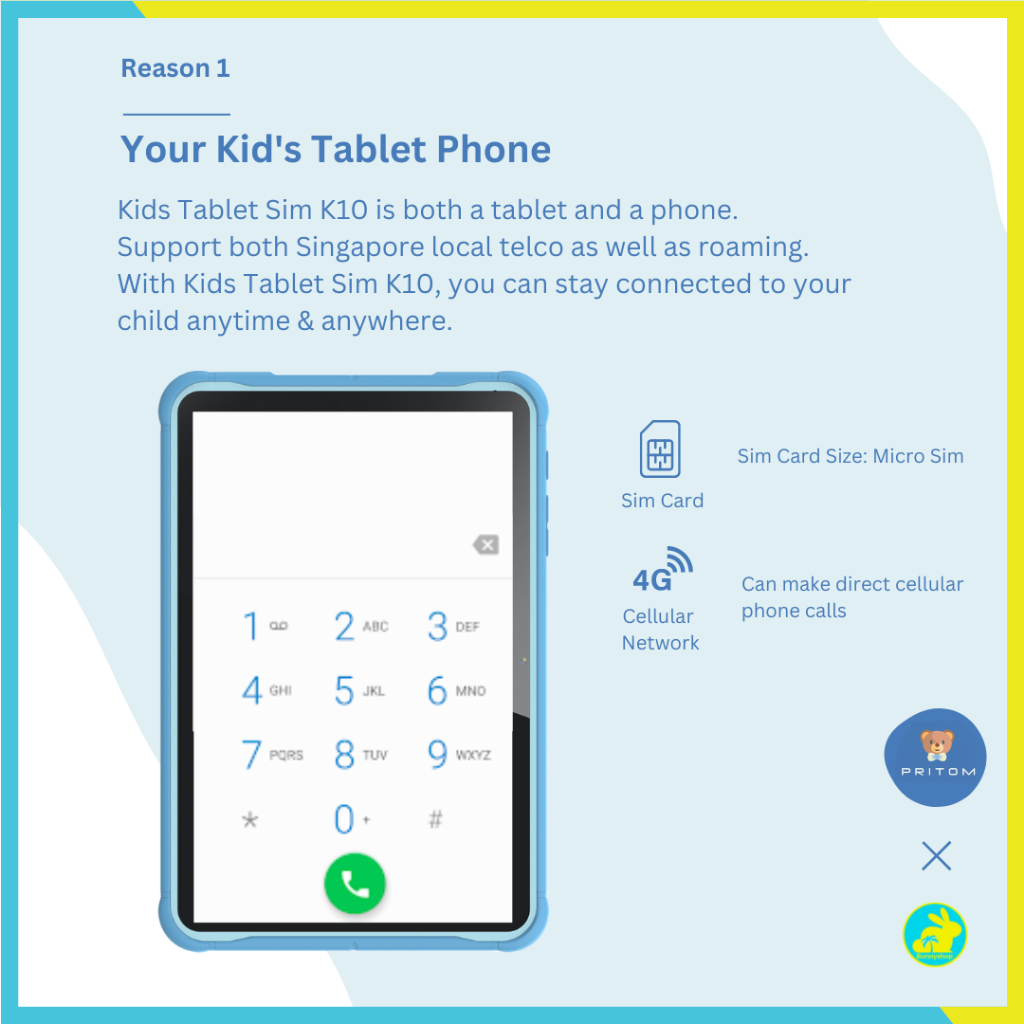 ?SG INSTOCK?【KIDS TABLET SIM K10】Android Tablet Phone★Put Sim Card★10.1 Inch Display★Parental Control★Google★Bunnyshop®