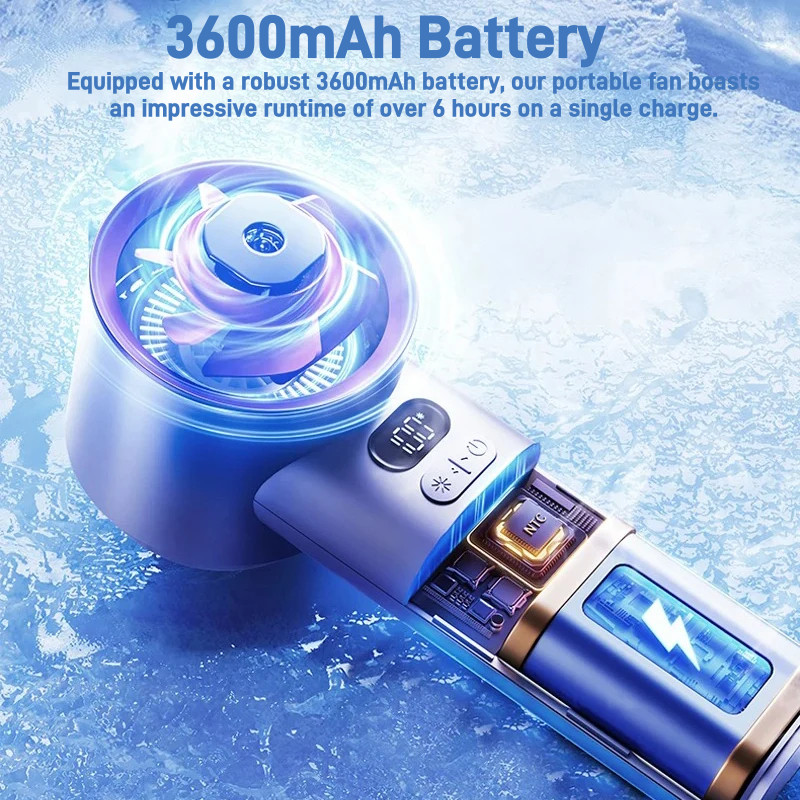 2024 NEW Portable Handheld Turbo Fan 100 Speeds Adjustable Jet Fan Air Conditioner Refrigeration Mini Fan LED Display 3600mAh Battery Cooling Fan for Travel Camping Outdoor