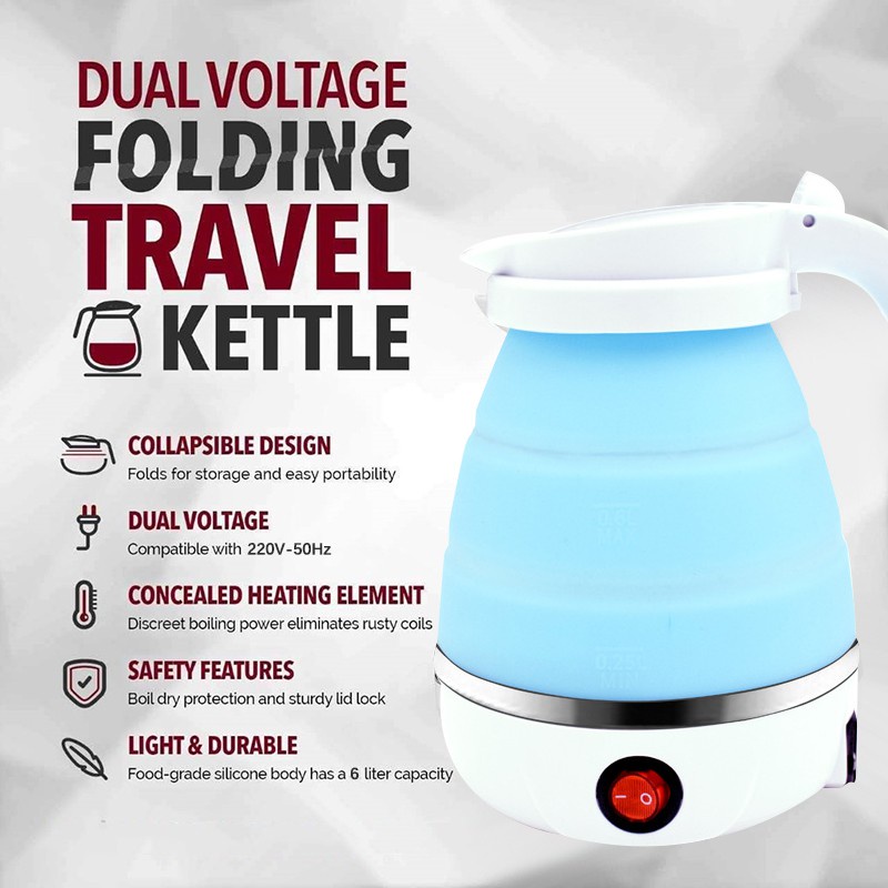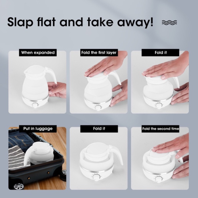 ?SG READY STOCK? Foldable Electric Kettle Portable Mini Travel Kettle 600ML 304 Stainless steel Food Grade Silicone